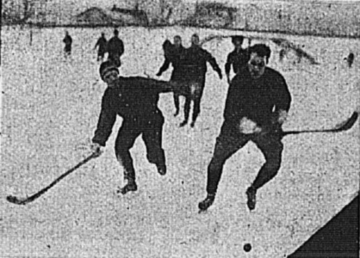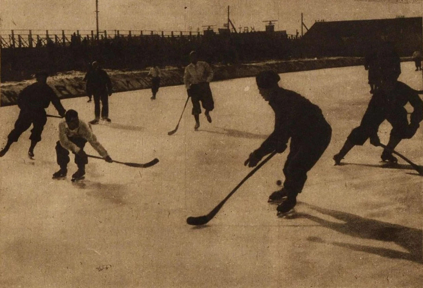 Ноябрь 1934 года. Пруд парка ЦДКА (?). Фотоэтюд Дебабова и Зельмы «Хоккеисты» (журнала «Физкультура и спорт» № 23 за декабрь 1934 года)
