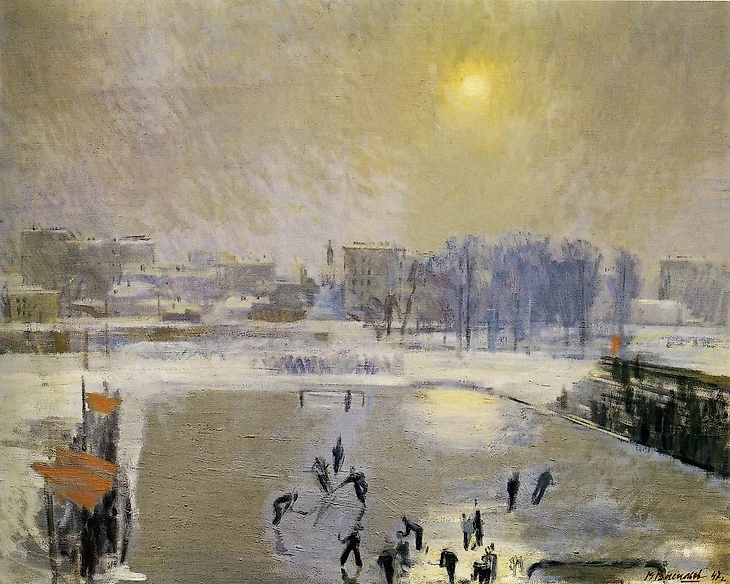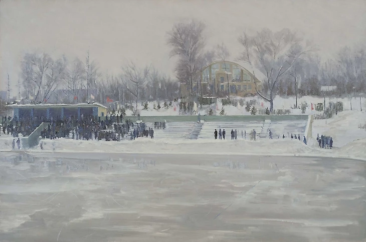 1948 год. Вигдор (Виктор) Мидлер. «Хоккей на стадионе ''Динамо''» (Саратовский государственный художественный музей имени А.Н. Радищева)