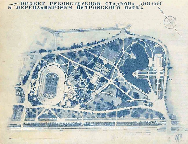 1935 год (?). Москва. Стадион «Динамо». Проект реконструкции стадиона и перепланировки Петровского парка (журнал «Физкультура и спорт» № 1-2 за январь 1936 года)