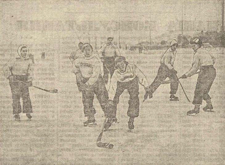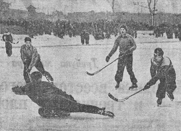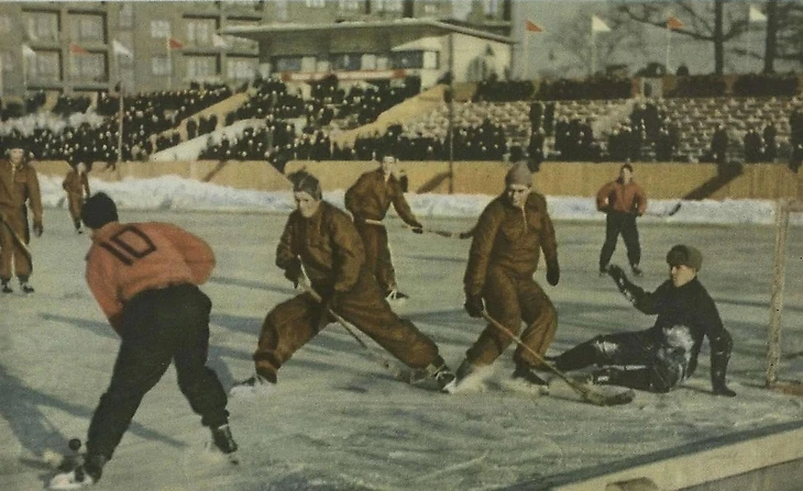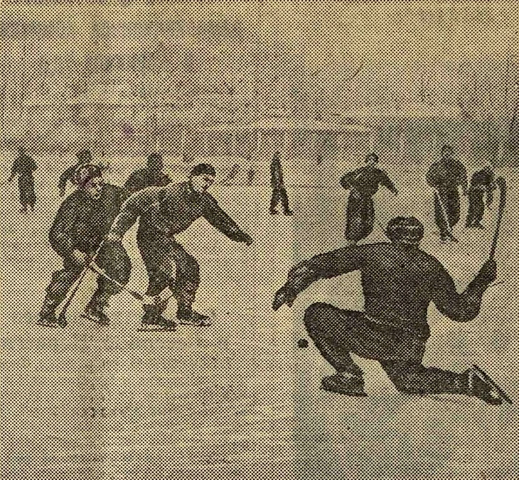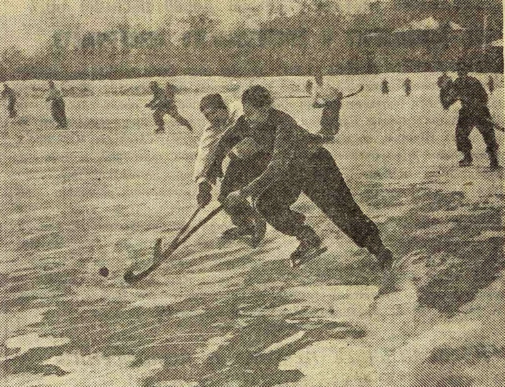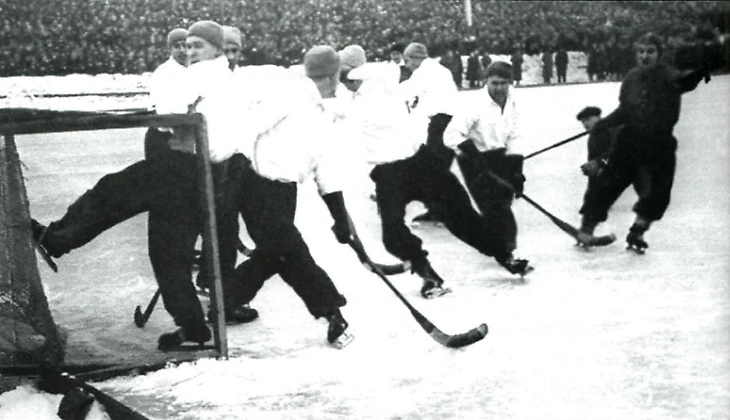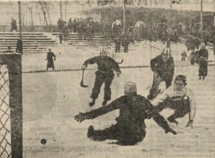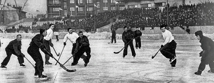 17 февраля 1946 года. Москва. Малый стадион «Динамо». 10 000 зрителей. Кубок СССР. Полуфинал. ЦДКА - «Динамо» (Москва) - 3:1 (0:1). Динамовцы в обороне (internationalhockeywiki.com)