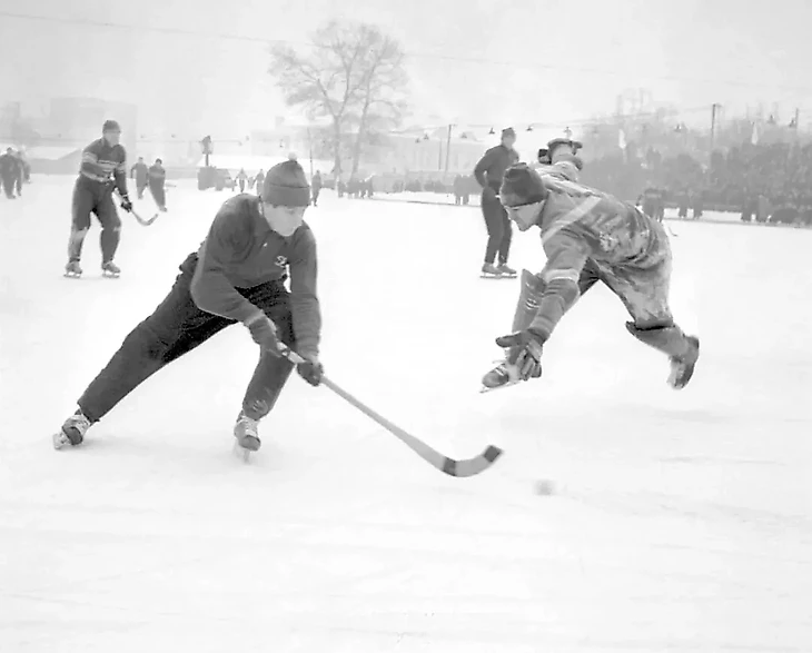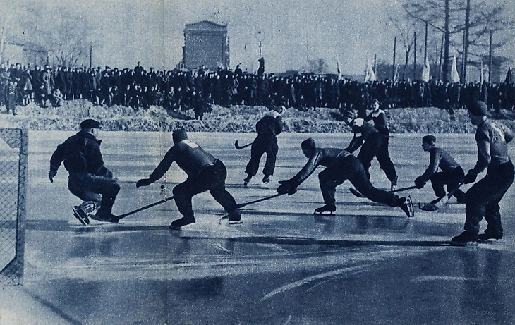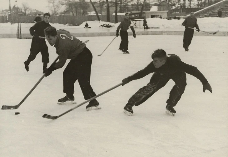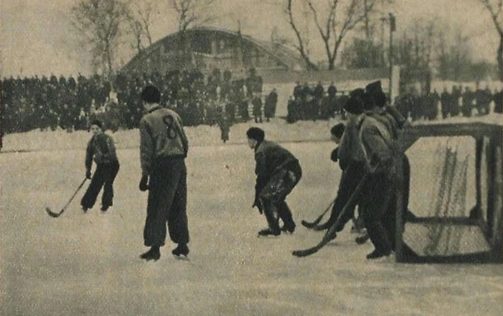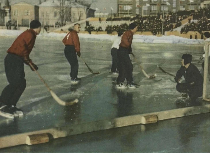 22 декабря 1946 года. Москва. Малый стадион «Динамо». Чемпионат СССР по канадскому хоккею. Подгруппа «А». ЦДКА - Дом офицеров (Свердловск) - 5:1 (0:0, 4:1, 1:0). Первая игра московских армейцев в чемпионатах страны по хоккею с шайбой (фото Леонида Доренского / Библиотека Гарвардского университета)