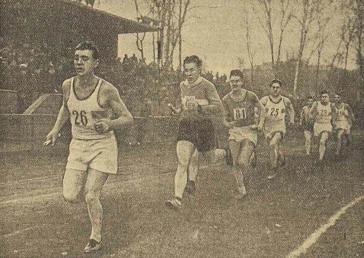 12 октября 1941 года. Москва. Малый стадион «Динамо». «Вот уже 30 лет московские легкоатлеты эстафетными соревнованиями закрывают на гаревой дорожке свой сезон. В прошедшее воскресенье эти соревнования состоялись на малом стадионе «Динамо». На старт вышло 20 мужских и женских команд. <...> На снимке старт эстафеты 5 х 1 000 метров. Впереди бежит Хрящиков («Динамо»), за ним Пахарнаев («Спартак»), Малышин («Локомотив») и боец части подполковника Рохлина Соболев» (фото Н. Волкова из газеты «Красный спорт» № 41 от 14 октября 1941 года)