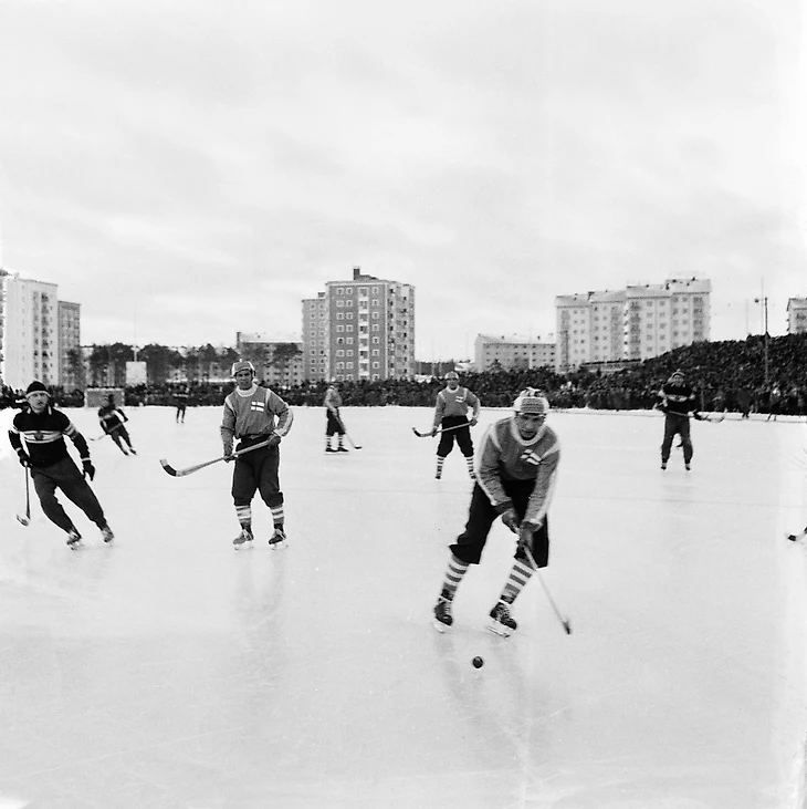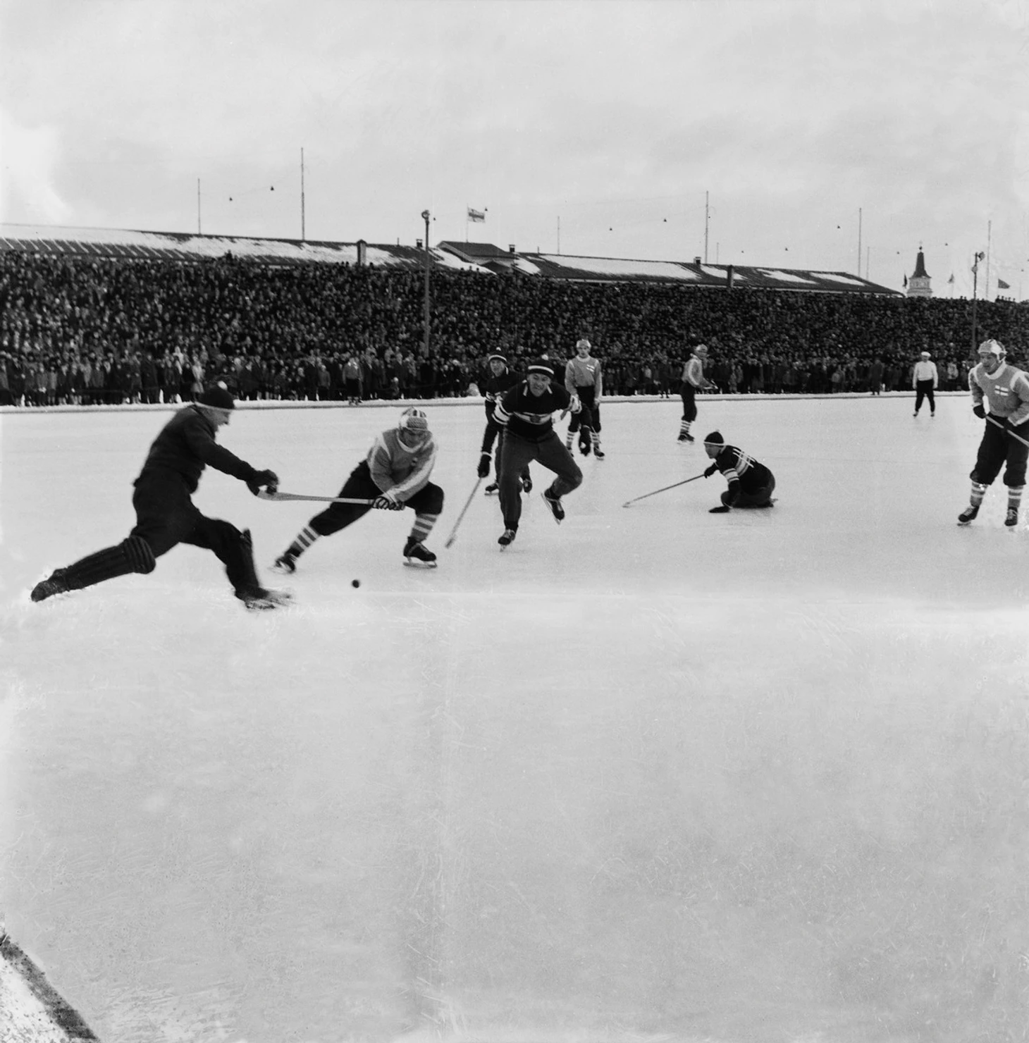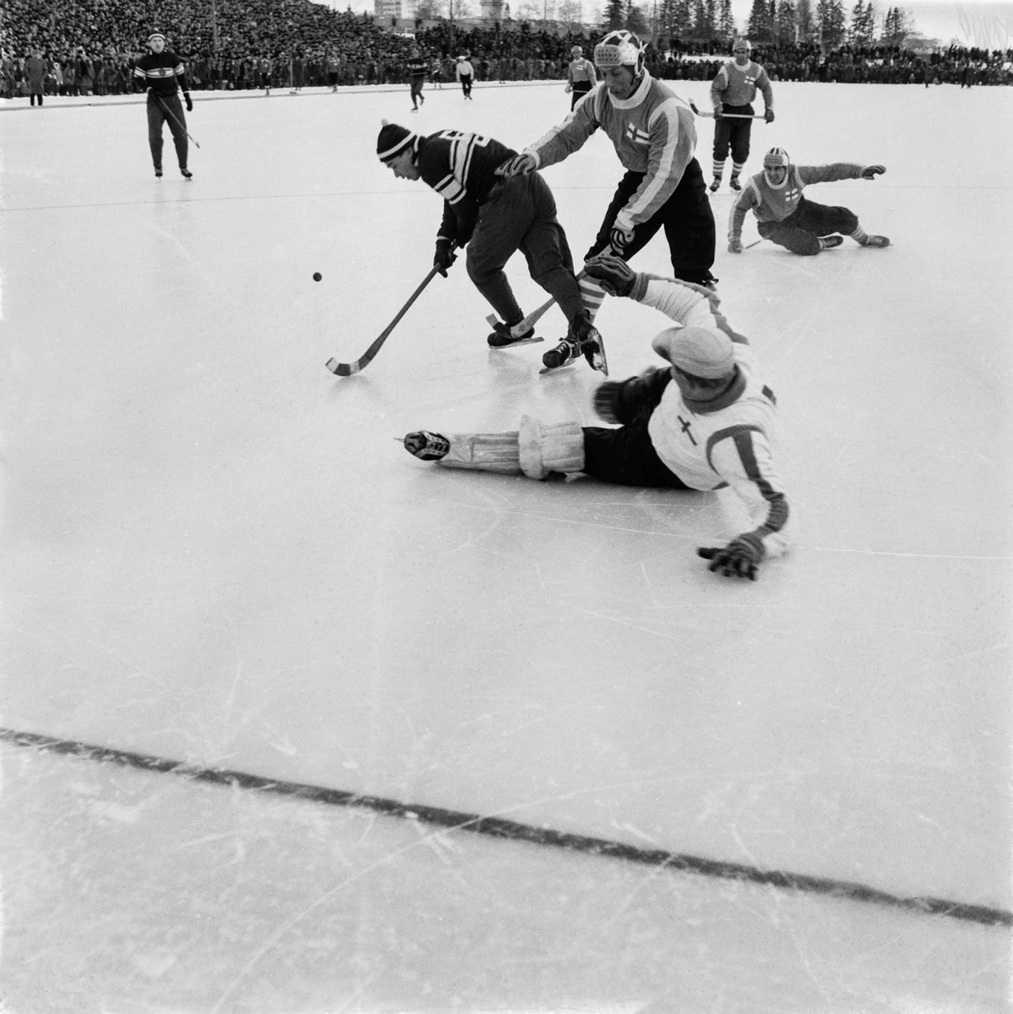 21 февраля 1959 года. Оулу. Стадион «Раати». 14 341 зритель. Товарищеская игра. Финляндия - СССР - 2:5 (1:3). Момент игры (museovirasto.finna.fi)