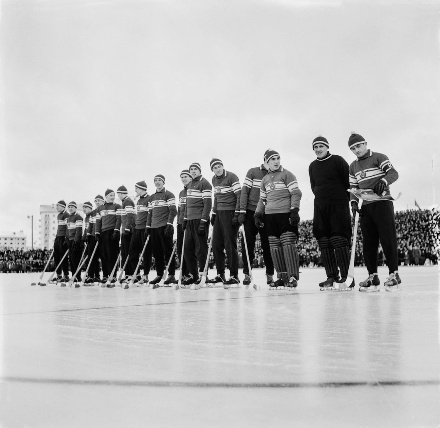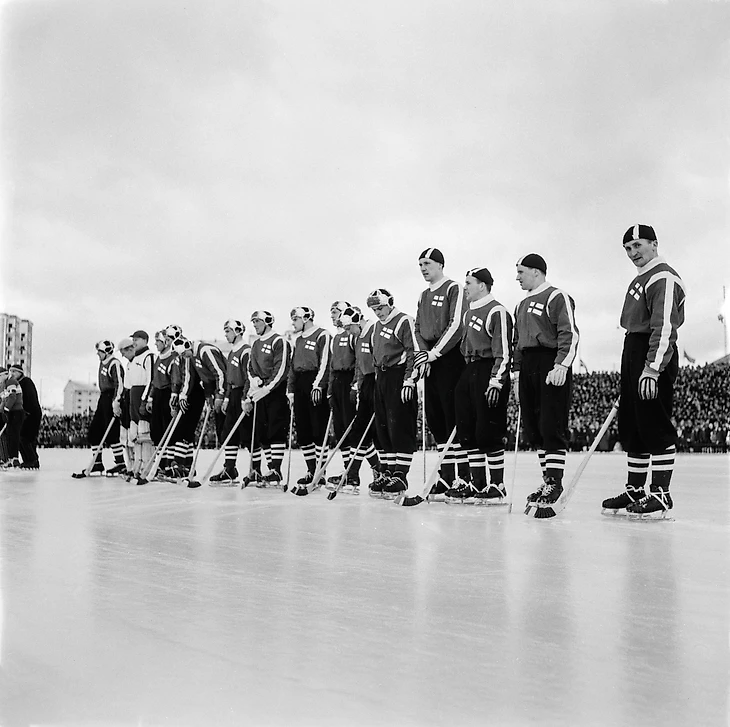 21 февраля 1959 года. Оулу. Стадион «Раати». 14 341 зритель. Товарищеская игра. Финляндия - СССР - 2:5 (1:3). Советская сборная перед матчем (museovirasto.finna.fi)
