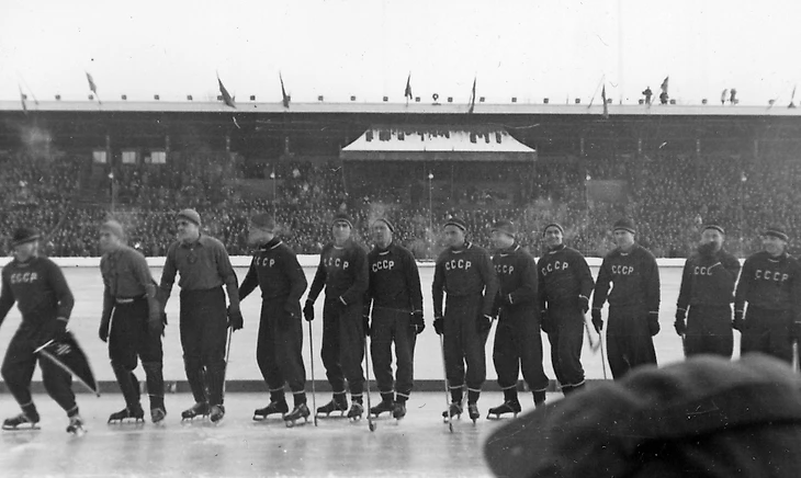 Февраль 1955 года. Стокгольм. Олимпийский стадион. Тренировка сборной СССР