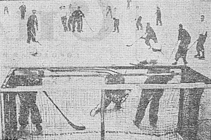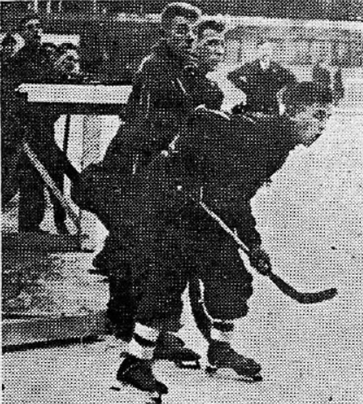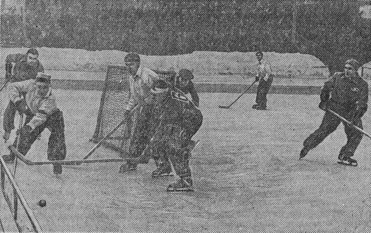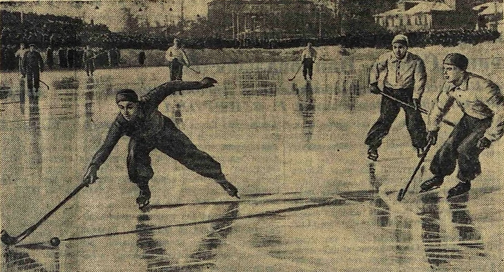 19 февраля 1945 года. Москва. Каток Парка ЦДКА им. М.В. Фрунзе. Кубок СССР. 1/4 финала. ЦДКА - «Динамо» (Ленинград) - 4:1 (фото Г. Яблоновского из газеты «Вечерняя Москва» № 46 от 24 февраля 1945 года)