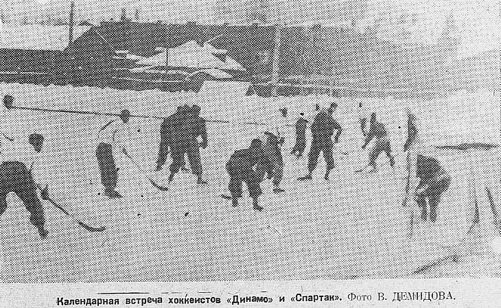 «Руководство облсовета «Динамо» решило культивировать хоккей с шайбой и заявило команду в чемпионат СССР, «русачи», лишившись многих игроков, утратили ведущие позиции в городе» (энциклопедия «Хоккей с мячом», 2009).