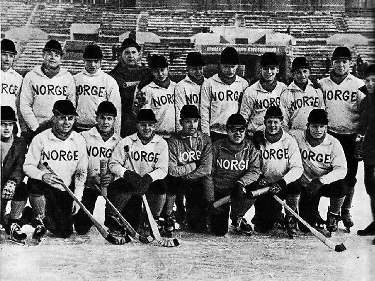 27 февраля 1965 года. Москва. Центральный стадион «Динамо». Сборная Норвегии - серебряный призер IV чемпионата мира по хоккею с мячом (фото И. Осипова из журнала «Спортивные игры» № 4 за апрель 1965 года)