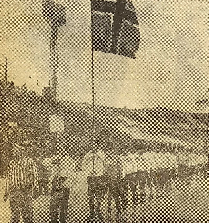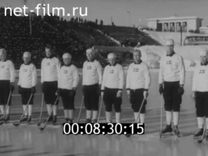 22 февраля 1965 года. Иваново. Стадион «Текстильщик». 14 000 зрителей. Швеция - Норвегия - 2:2 (1:1). Шведы перед игрой (стоп кадр из киножурнала «Наш край» № 14 за 1965 год)