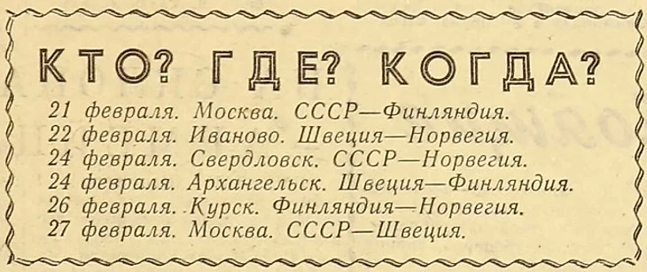 24 февраля 1965 года. Архангельск. Стадион «Динамо». 18 000 зрителей. Финляндия - Швеция - 2:1 (2:1)