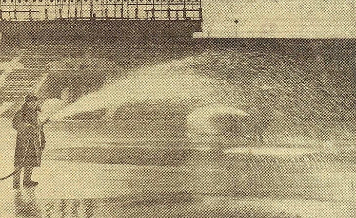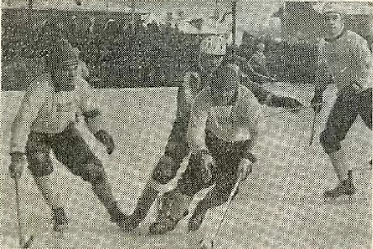 19 (?) февраля 1965 года. Москва. Центральный стадион «Динамо». «Последние приготовления к IV чемпионату мира по хоккею с мячом» (фото Б. Шипунова из газеты «Советский спорт» № 42 за 20 февраля 1965 года)