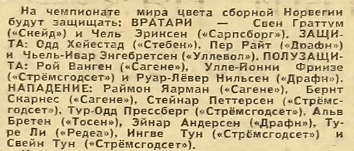 IV чемпионат мира по хоккею с мячом. Состав сборной Норвегии из газеты «Советский спорт» № 41 за 19 февраля 1965 года