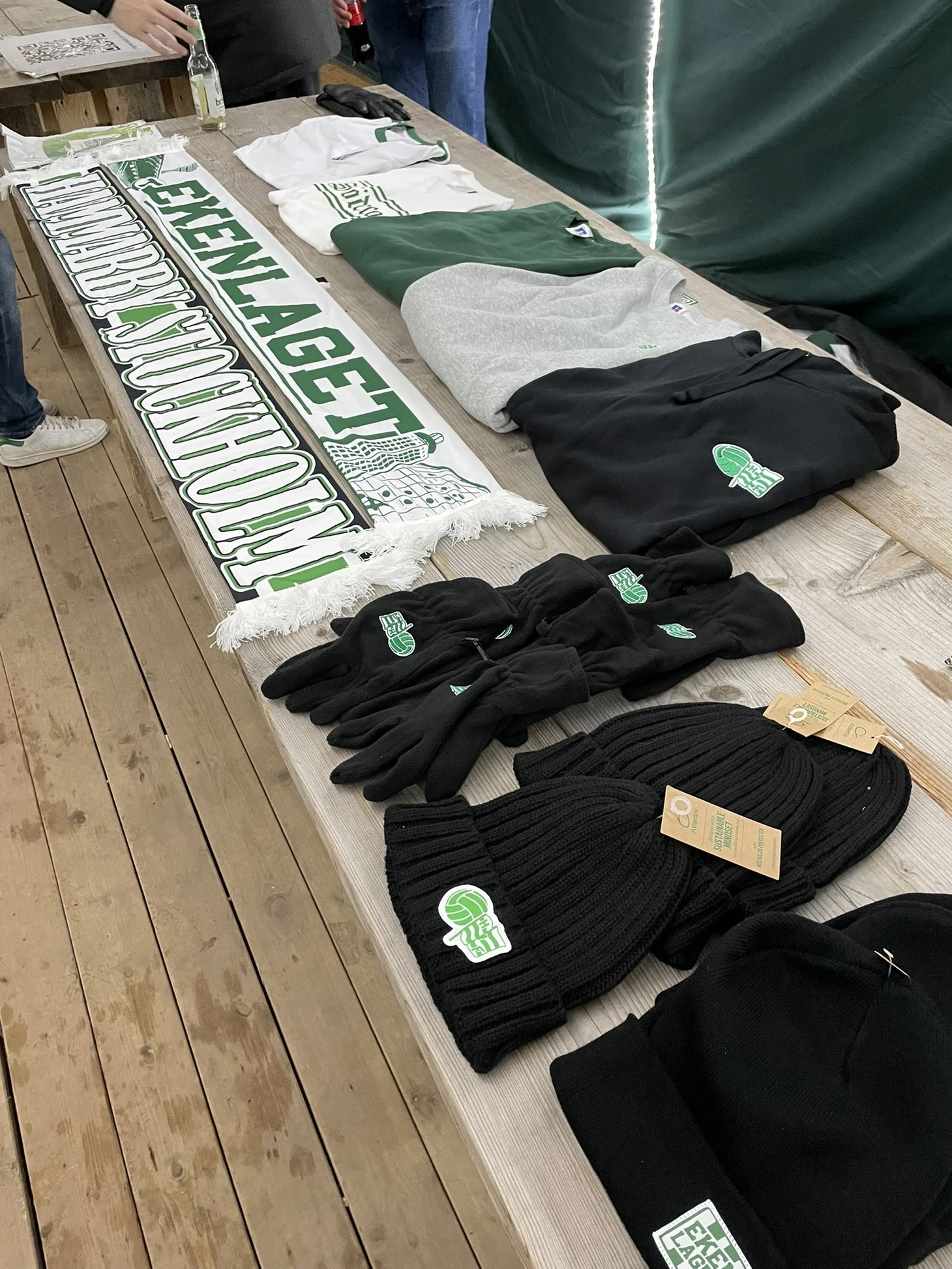 Осмотревшись, я пошел рассматривать атрибутику. Официальный клубный мерч весьма скуден, на выбор по паре видов бейсболок, шапок и шарфов. Я приобрел шапку и шарф, что в сумме вышло 548 крон - почти 5 тысяч русских рублей.