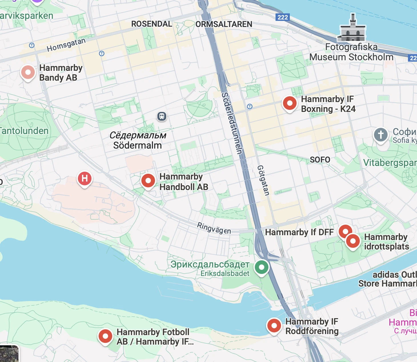 Хаммарбю - клуб большой, и присутствует не только в хоккее с мячом. На наши деньги это что-то вроде «Спартака», который тоже присутствует почти во всех видах спорта. Клуб имеет свою географическую привязку в пределах Стокгольма - район Сёдермальм на юге города и традиционно считается клубом для рабочего класса. Все команды базируются не очень далеко друг от друга: