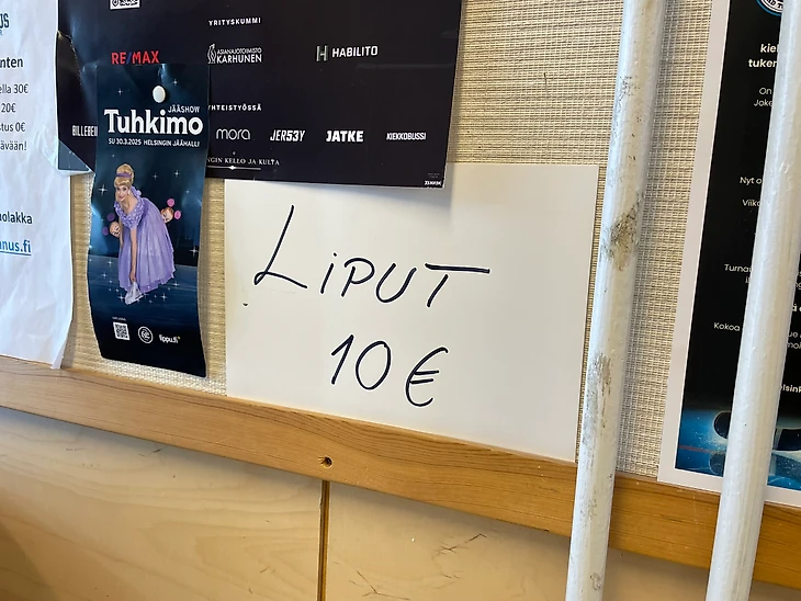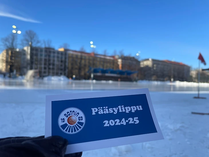 Здесь довольно простенько – небольшой коридор, в середине которого стоит контролёр с мобильной кассой, билет – 10 евро (~1000 рублей), абонемент, хоть и уже не актуален, стоит 50 евро. Интересно, что на этом матче почему-то не было в продаже атрибутики, хотя у «Ботнии» она нередко имеется. Самый популярный предмет, как и в шведском бенди, это фирменная шапка с помпоном – 20 евро. Финские клубы не производят бендийки для болельщиков, но частенько выносят на продажу игровую форму из прошлых сезонов – я видел цены от 35 до 50 евро.