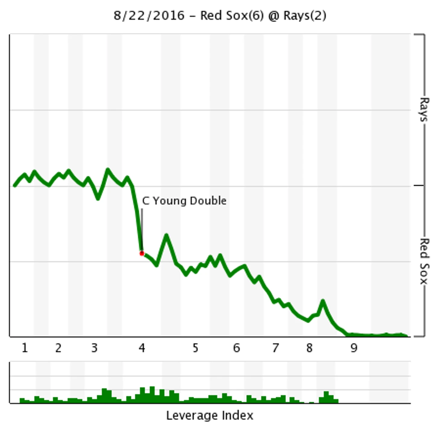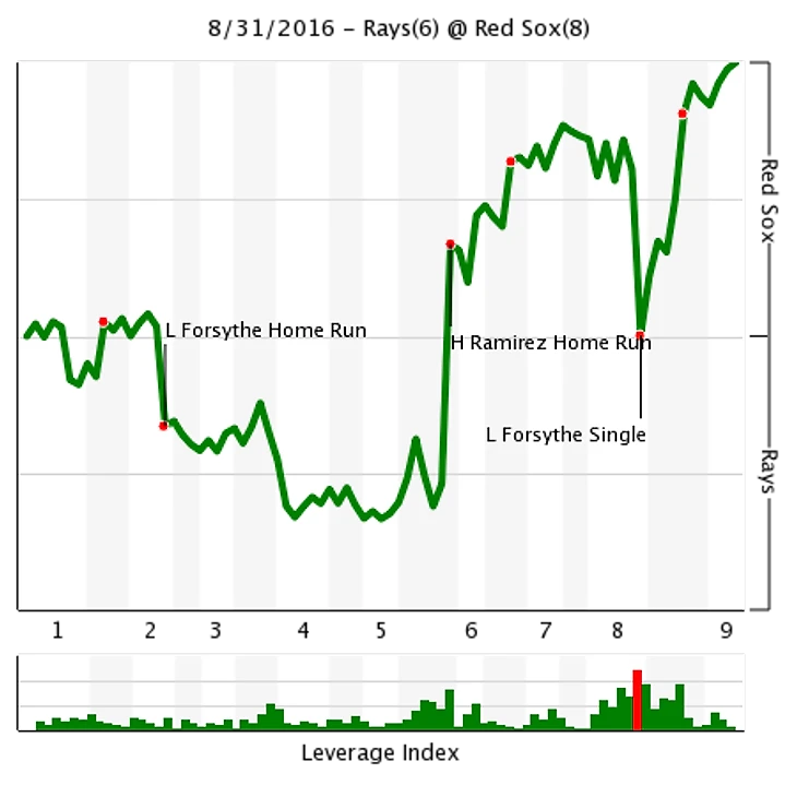 А вот и старая-добрая игра в догонялки, без каких-либо исторических подоплёк, индивидуальных достижений или фантазий на тему "а что было бы, если?" Набрали Рэйс ран в первом иннинге? Зандер тут же ответил соло бомбой. Выдал Райт ещё два хоум-рана после этого? Хэнли ответил грэнд-слэмом, который не только нивелировал 3-рановое отставание, а и вывел Сокс вперёд. Добавил JBJ ещё и свой соло хоум-ран? Рэйс не преминули ответить 2-RBI синглом Форсайта у Тазавы, наказавшего Сокс за уоки Абада. Но когда внизу восьмого иннинга в борьбу ввязался даже Арон Хилл, который до этого не мог выбить хита в 20 выходах на биту подряд, а тут влепил RBI сингл после уока Хэнли и сингла Холта, у Рэйс уже не было чем ответить, тем более, что дабл JBJ увеличил лидерство Сокс до двух ранов. И как тут в итоге не вспомнить то, что в четвёртом иннинге Муки выбил на второй базе пожадничавшего Кирмайера, попытавшегося превратить двухаутовый сингл в дабл, а Бэкхем, бежавший в дом трусцой, не успел коснуться плиты дома раньше тэга Педройи? Бэкхем за такую расхлябанность был сослан в майноры и не вызывался в ростер даже в сентябре, а нам остаётся только позлорадствовать над фанами Рэйс словами "Поуси бы так не поступил", намекая на то, что в 2008 году Рэйс предпочли выбрать первым пиком именно Бэкхема, а не великолепного кэтчера Джайентс.