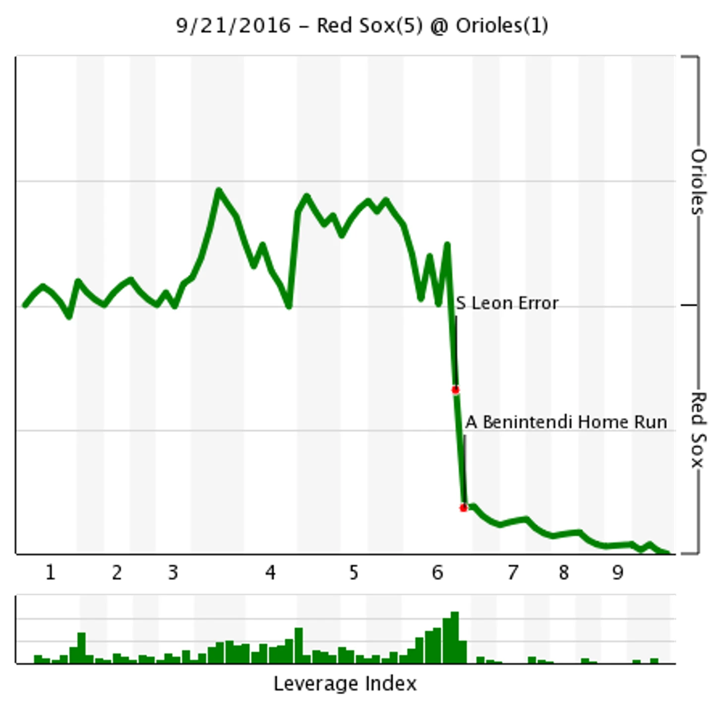 Клэй Бакхольц больше не с нами, да и вообще сезон 2016 года ему в актив занести никак не получится, но нельзя в очередной раз не напомнить о том, что когда он "в духе", он может быть очень хорошим №3, а то и №2. После того, как под конец сезона Бакхольц вернулся в ротацию со ссылки в буллпен, он выглядел более чем прилично (чем заработал себе принятие клубной опции на следующий сезон, пусть потом Сокс и избавились от неё ради экономии), и этот старт в самой середине 11-игровой сентябрьской победной серии - этому прямое доказательство. Бак отбросал 7 иннингов и выдал только 1 ран (и то во многом "благодаря" дурацкой ошибке Леона), и поскольку Сокс ну никак не могли справиться с Убальдо Хименесом, это было крайне важно. Потому что в сезонах 2014 и 2015 года Сокс подобные игры проигрывали уж очень часто - сначала никак не могли выбить пару ранов у ужасного стартёра соперника, а потом в ключевой момент собственный питчер "ломался" и игра на этом заканчивалась. Но Бак не сломался, и пусть Сокс выиграли во многом благодаря тому, что Крис Дэвис допустил грубейшую ошибку, его заслуг умалять нельзя. Как и заслуги Эндрю Бенинтенди, который не дал Брэду Браку очухаться от пропущенных из-за непонятной спешки Дэвиса при бегущем на первую базу Леоне, и добавил к двум незаслуженным ранам Ориолс ещё трёшку, выбив первый же питч Брака за пределы поля. Вот так в два питча счёт из 0-1 стал 5-1, на чём можно было сворачивать лавочку - Сокс без проблем официально оформили седьмую победу подряд и победу в 4-матчевой серии над конкурентом в борьбе за победу в дивизионе.