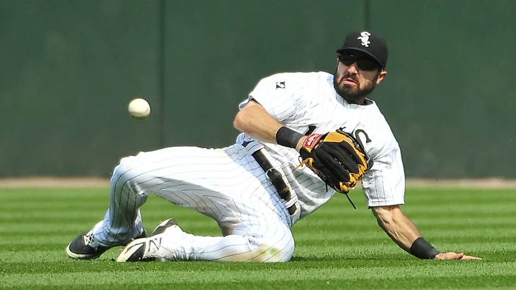 Чикаго. Начнем с простого, Мировую Серию (далее по тексту просто "МС") 4-0 выиграли в 2005 году, последние 9 лет без плей-офф, как мне кажется, это так себе результат (но некоторые могут, конечно, возразить, что это очень перспективная команда), но кто хочет сидеть 10 лет и ждать этих самых перспектив? Но команда и правда довольно молодая, на бите ребятам 27.5 лет в среднем, питчерам 30. В прошлом (и позапрошлом) сезоне самым топовым игроком команды был центрфилдер Адам Итон, по 14 хоумранов в обоих сезонах, по 50 RBI и по 90 ранов. Может быть он крутой защитник, я не смотрел матчей Чикаго, а в защитной статистике пока не особо понимаю, в прошлом году был 19 в списках на MVP в Американской лиге. Короче, вот с каким крутым лицом он защищается в этом году: