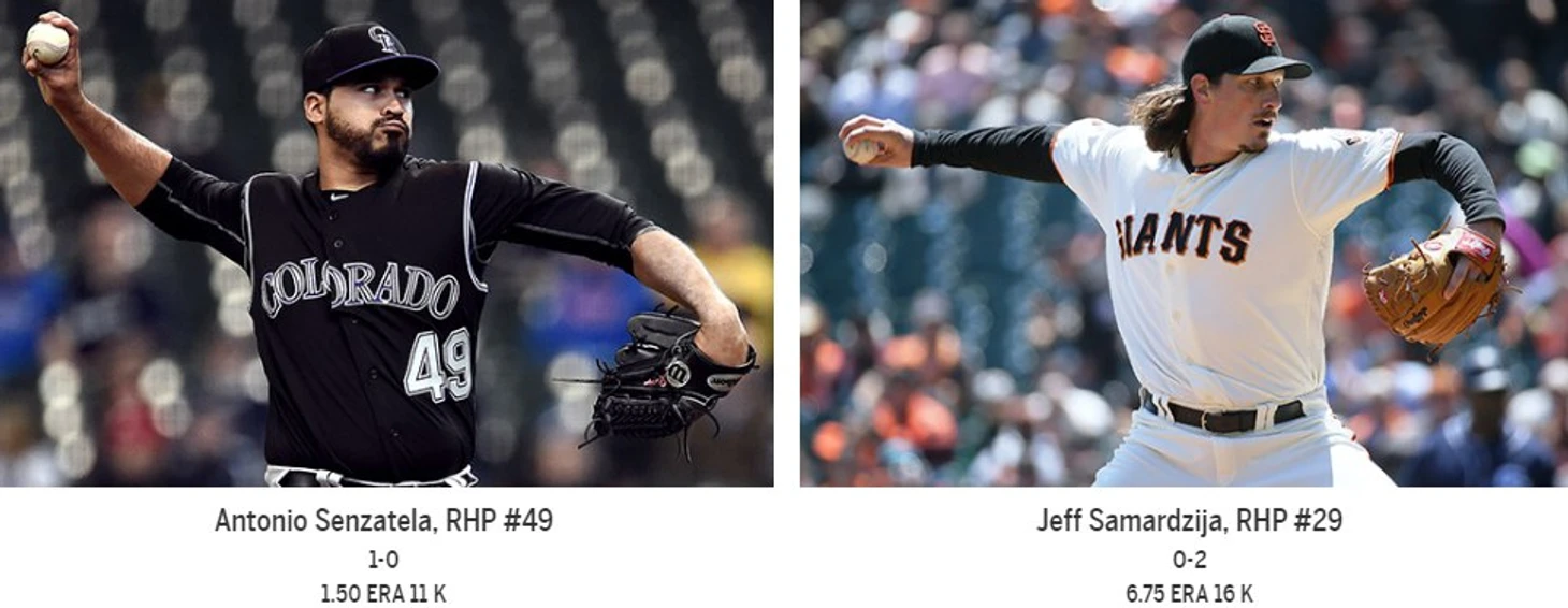 23:05 San Francisco Giants(J. Samardzija) @ Colorado Rockies(A. Senzatela)