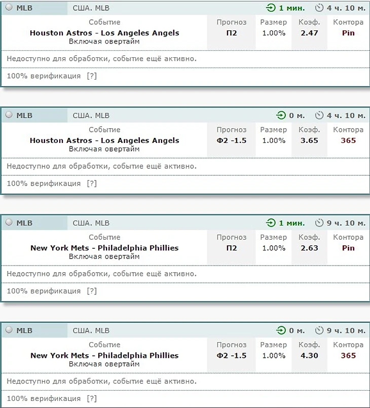 02:10 New York Mets - Philadelphia Phillies. Ф2 (-1.5) К=4.30 Bet365 +++