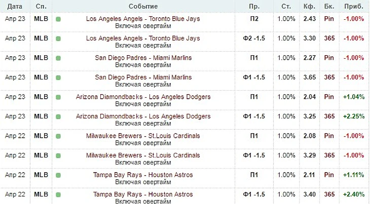 20:35 Philadelphia Phillies - Atlanta Braves. П1 К=2.06 Pinnacle +++