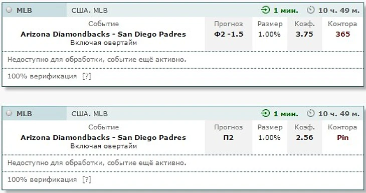 04:40 Arizona Diamondbacks - San Diego Padres. П2 К=2.56 Pinnacle ---