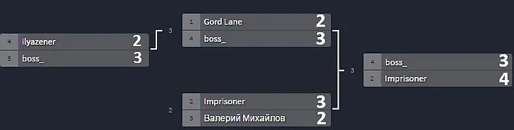 Первый кто дойдет до 4х побед выиграет серию и пройдет дальше, проигравший вылетает (соперник имеет право ответить в пределах этого же количества ставок).