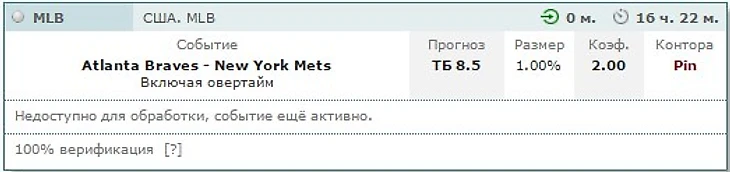 02:35 Atlanta Braves - New York Mets. ТБ 8.5 К=2.00 Pinnacle +++