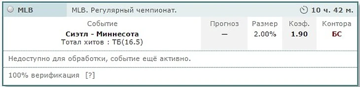 Тотал хитов больше (16.5) К =1.90 Ставка 100$