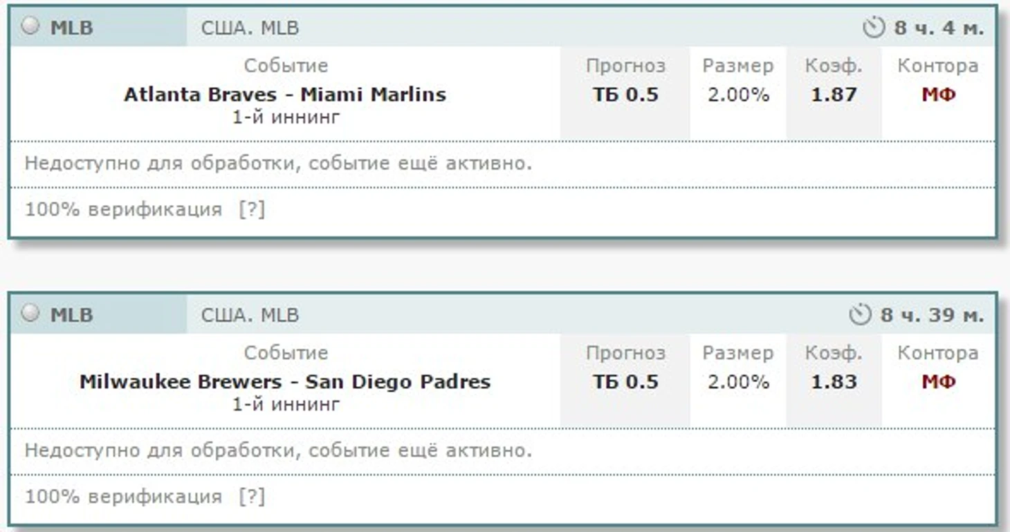 02:35 Atlanta Braves - Miami Marlins. 1-й иннинг ТБ 0.5 К=1.87 Марафон 300 +++
