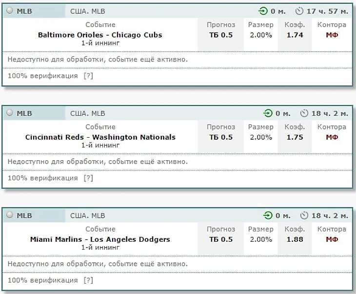 02:05 Baltimore Orioles - Chicago Cubs. 1й иннинг ТБ 0.5 К=1.74 Марафон 300 +++