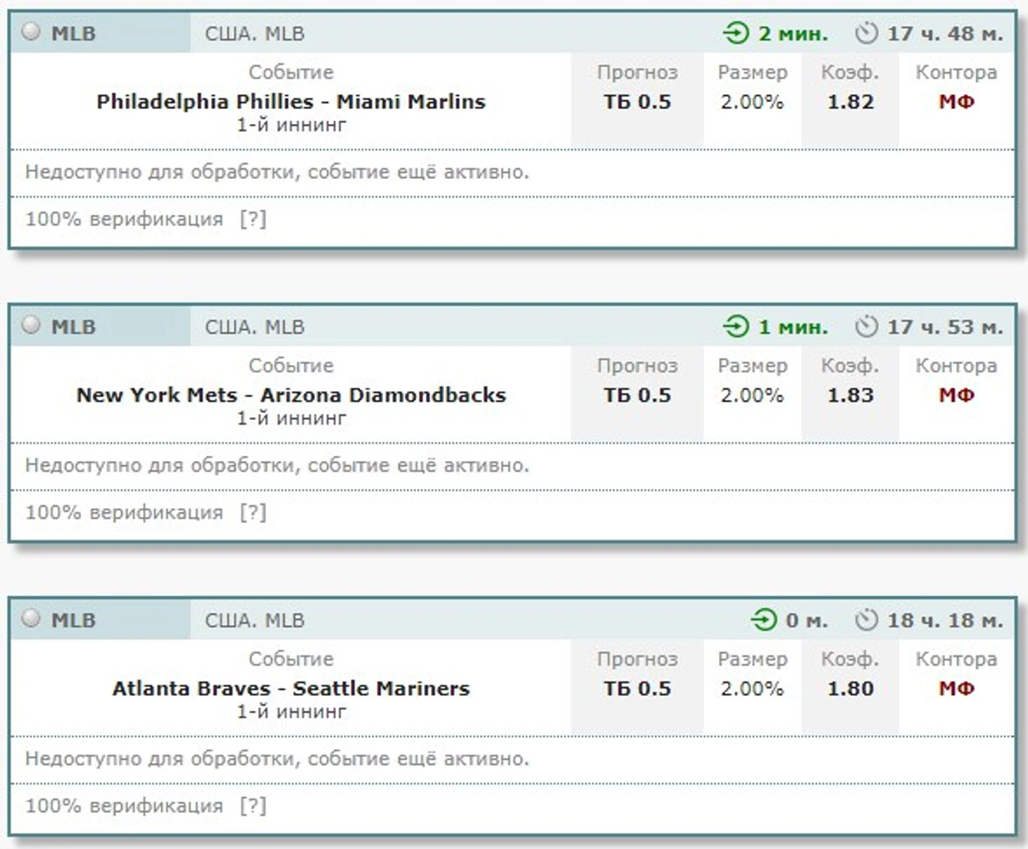 02:35 Atlanta Braves - Seattle Mariners. 1-й иннинг ТБ 0.5 К=1.80 Марафон 300 +++