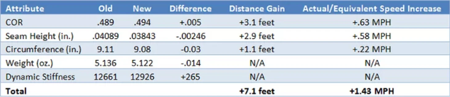 - Структурные изменения поверхности мяча: чуть более гладкая или грубая поверхность мяча влияет на его захват и закручивание, от чего зависят изменения в траектории кёрвболов, а также объясняются возросшие проблемы с мозолями у питчеров.