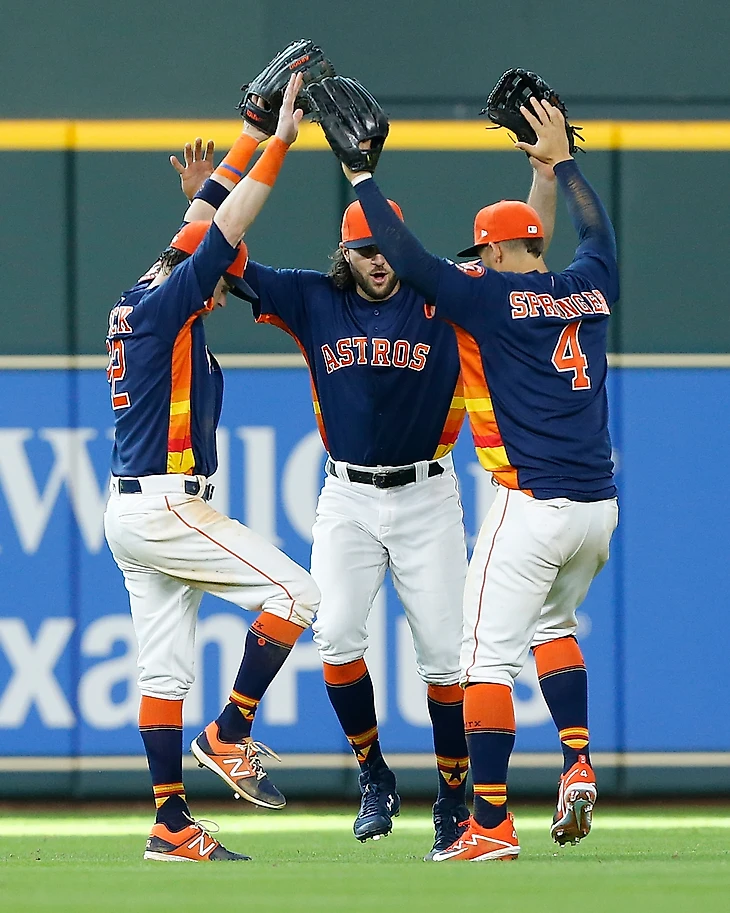 "Хьюстон Астрос"-"Канзас-Сити Ройалс" 11:3.Во втором иннинге Хосе Алтуве выбил сингл и Макс Стасси с Тони Кемпом приносят хозяевам 2 очка.Затем Юли Гурриэль выбил гранд-слэм,а Алекс Брегман с Хосе Алтуве и Карлосом Корреа приносят хозяевам ещё 4 очка.В 4 иннинге после хоум-рана Лукаса Дуды гости размочили счёт.В 7 иннинге Макс Стаси выбил дабл и Джейк Марисник забежал в дом.В 8 иннинге Эван Гаттис своим хоум-раном закончил матч.Стартовый питчер хозяев Гаррет Коул заработал 70 страйков,один флай и 4 гранд-аута.