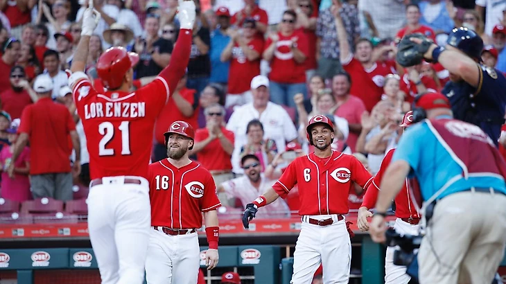 "Цинциннати Редс"-"Милуоки Брюэрс" 12:3.В 7 иннинге хозяева набрали 8 очков,что позволило им выйти вперёд и уже удерживать нити игры.В первом иннинге Эрик Тэймс выбил хоум-ран (11) и вывел гостей вперёд.В 6 иннинге Джонатан Вильяр выбил дабл (8) и Эран Перес приносит гостям ещё одно очко.В 7 иннинге Скутер Дженнетт выбил дабл (20),а Хосе Пераса сравнял счёт в матче.Затем Адам Дюваль выбил сингл,а Скутер Дженнетт и Эухенио Суарес приносят хозяевам ещё 2 очка.Затем Майкл Лоренцен выбил гранд-слэм (3),а Билли Хэмилтон с Адамом Дювалем и Такером Барнхартом забежали в дом.Питчер хозяев Давид Эрнандес (3-0) заработал 14 страйков и один гранд-аут.