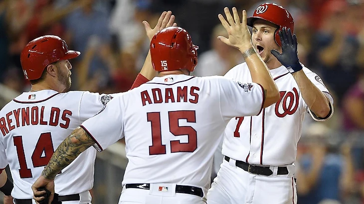 "Вашингтон Нэшнлз"-"Майами Марлинз" 14:12.Гости после первых 4 иннингов ведя с разницей в 8 очков умудрились в следующих 3 иннингах пропустить 13 очков и потерпели поражение.Во 2 иннинге Джей-Ти Реалмуто выбил сингл,а Ядиель Ривера и Дерек Дитрих приносят гостям 2 очка.После этого Мартин Прадо выбил хоум-ран (1) и Джей-Ти Реалмуто с Джастином Буром забежали в дом.В 4 иннинге Джастин Бур выбил хоум-ран (14) и Джей-Ти Реалмуто снова забежал в дом.В 4 иннинге после хоум-рана (10) Тре Тёрнера хозяева размочили счёт.В 5 иннинге после ошибки питчера Мэтт Адамс приносит хозяевам очко.Затем Хуан Сото выбил дабл (10),а Майкл Тэйлор и Тре Тёрнер сокращают разницу в счёте.В 6 иннинге Тре Тёрнер выбил гранд-слэм (11),а Мэтт Адамс с Майклом Тэйлором и Марком Рейнолдсом забежали в дом.В 7 иннинге Тре Тёрнер выбил сингл,а Майкл Тэйлор и Спенсер Кибум увеличили отрыв хозяев.В 8 иннинге Брайан Андерсон выбил хоум-ран (6),а Старлин Кастро и Дерек Дитрих забежали в дом.Питчер хозяев Шон Келли (1-0) заработал 12 страйков,клоузер Шон Дулиттл заработал 12 страйков и один флай-аут.