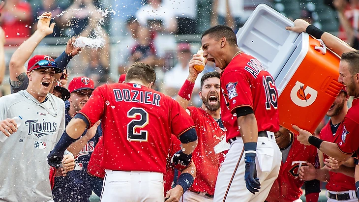 "Миннесота Твинс"-"Тампа-Бэй Рейс" 11:7.Хозяева лишь в дополнительном иннинге смогли сломить сопротивление гостей.В 5 иннинге Джои Вендл выбил дабл (10) и Даниэль Робертсон увеличил отрыв хозяев.В 7 иннинге Брайан Дозьер выбил сингл,а Джо Мауэр и Эдди Росарио сравняли счёт в матче.В 8 иннинге Хесус Сукре выбил дабл (3),а Мэтт Даффи и Адейни Эчаварриа вывели гостей вперёд.Хозяева сравняли счёт после ошибки питчера гостей и забегания Хорхе Поланко.В 9 иннинге после ошибки защиты хозяев Даниэль Робертсон снова сравнял счёт в матче.В 10 иннинге хозяева вырвали победу после того,как Брайан Дозьер выбил гранд-слэм (16),а Джейк Кейв с Джо Мауэром и Эдди Росарио забежали в дом.Реливер хозяев Алан Бусенитц (3-0) заработал 12 страйков,два флай-аута и один гранд-аут.