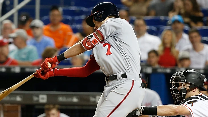 "Майами Марлинз"-"Вашингтон Нэшнлз" 3:10.Хозяева поведя после первого иннинге с разницей в 3 очка упустили преимущество и проиграли.В первом иннинге Джей-Ти Реалмуто выбил дабл (22),а Старлин Кастро и Брайан Андерсон вывели хозяев вперёд.В 4 иннинге Тре Тёрнер выбил хоум-ран (13) и гости размочили счёт.Затем Хуан Сото своим хоум-раном (12) сократил разрыв в счёте.В 6 иннинге Райан Циммерман выбил дабл (6) и Адам Итон сравнял счёт в матче.В 7 иннинге Тре Тёрнер выбил трипл (3),а Вилмер Дефо и Майкл Тэйлор вывели гостей вперёд.После этого Брайс Харпер выбил дабл (15) и Тре Тёрнер увечили отрыв гостей.В 9 иннинге Мэтт Витерс выбил дабл (3),а Брайс Харпер и Хуан Сото принесли гостям ещё два очка.Затем Вилмер Дефо выбил трипл (5) и Мэтт Витерс принёс гостям ещё одно очко.После этого Майкл Тэйлор выбил дабл (19),а Вилмер Дефо установил окончательный счёт в матче.Реливер гостей Джастин Миллер (6-1) заработал 9 страйков и один гранд-аут.