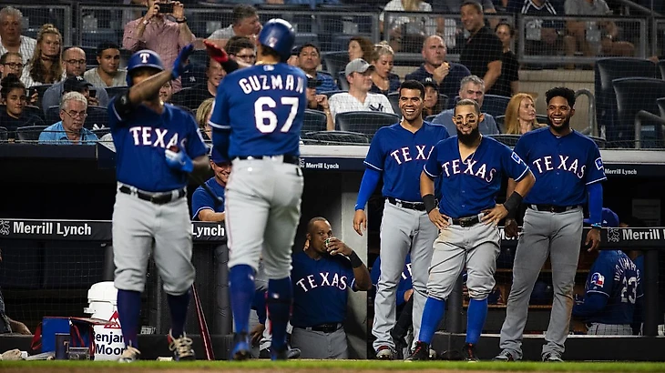 "Нью-Йорк Янкис"-"Техас Рейнджерс" 7:12.В 4 иннинге Адриан Белтре своим хоум-раном (7) отправил Элвиса Андруса в дом,выведя гостей вперёд.Затем Рональд Гузман выбил хоум-ран (10).В 5 иннинге Элвис Андрус выбил дабл (15),а Дрю Робинсон и Ругнед Одор увеличили отрыв гостей.Хозяева ответили хоум-раном (10) Бретта Гарднера.В 6 иннинге Рональд Гузман снова выбил хоум-ран (11),снова увеличив отрыв гостей.Затем Ругнед Одор выбил сингл,а Дрю Робинсон и Шин Су Чу принесли гостям ещё два очка.Хозяева вначале ответили даблом (31) Мигеля Андухара и забеганием Джанкарло Стэнтона.Затем Люк Войт выбил сингл,а Диди Грегориус и Мигель Андухар сократили отрыв гостей.В 7 иннинге Рональд Гузман опять выбил хоум-ран (12)и увеличил отрыв гостей.Хозяева ответили хоум-раном (7) Остина Ромайна.В 8 иннинге Адриан Белтре выбил дабл (14).а Ругнед Одор и Элвис Андрус снова увеличили разрыв в счёте.Хозяева ответили синглом Остина Ромайна и забеганиями Диди Грегориуса с Мигелем Андухаром.Стартовый питчер гостей Майк Минор (9-6) заработал 55 страйков,6 флай-аутов и 5 гранд-аутов.