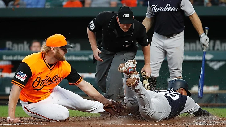 "Балтимор Ориолс"-"Нью-Йорк Янкис" 3:10.Во втором иннинге Ренато Нуньес выбил сингл,а Крис Дэвис и Тим Бэкхем вывели хозяев вперёд.В 3 иннинге Мигель Андухар своим хоум-раном (21) отправил Бретта Гарднера и Аарона Хикса в дом,выведя хозяев вперёд.В 4 иннинге Бретт Гарднер своим хоум-раном (11) отправил Шейна Робинсона в дом,увеличив отрыв гостей.В 8 иннинге Глейбер Торрес выбил хоум-ран (19) и принёс гостям ещё одно очко.В 9 иннинге Аарон Хикс выбил хоум-ран (21),увеличив ещё больше разницу в счёте.Стартовый питчер гостей Джей-Эй Хапп (15-6) заработал 74 страйка,два флай-аута и 5 гранд-аутов.
