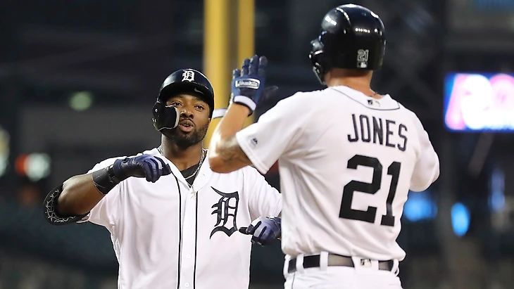 "Детройт Тайгерс"-"Канзас-Сити Ройалс" 11:8.В первом иннниге Хорхе Бонифацио своим хоум-раном (4) отправил Уайта Меррифилда и Хантера Дозьера в дом,выведя гостей вперёд.Хозяева ответили хоум-раном (1) Кристина Стюарта и забеганием ДжаКоби Джонса.Затем Николас Кастельянос выбил хоум-ран (22) и сравнял счёт в матче.Во втором иннинге Брайан Гудвин своим хоум-раном (5) отправил Алсидеса Эскобара в дом,выведя гостей вперёд.Хозяева ответили хоум-раном (2) Кристина Стюарта и забеганиями Пета Козма и ДжаКоби Джонса.Затем Виктор Мартинес выбил дабл (21) и Николас Кастельянос забежал в дом.В 4 иннинге Хантер Дозьер своим хоум-раном (10) отправил Уайта Меррифилда в дом.сократив отставание гостей.В 7 иннинге после ошибки питчера гостей Доуэл Луго принёс хозяевам ещё одно очко.В 9 иннинге Адальберто Мондеси выбил хоум-ран (11) и сократил снова отставание гостей.Реливер хозяев Зак Рейнинджер (1-0) заработал 23 страйка,по два флай-аута и гранд-аута.