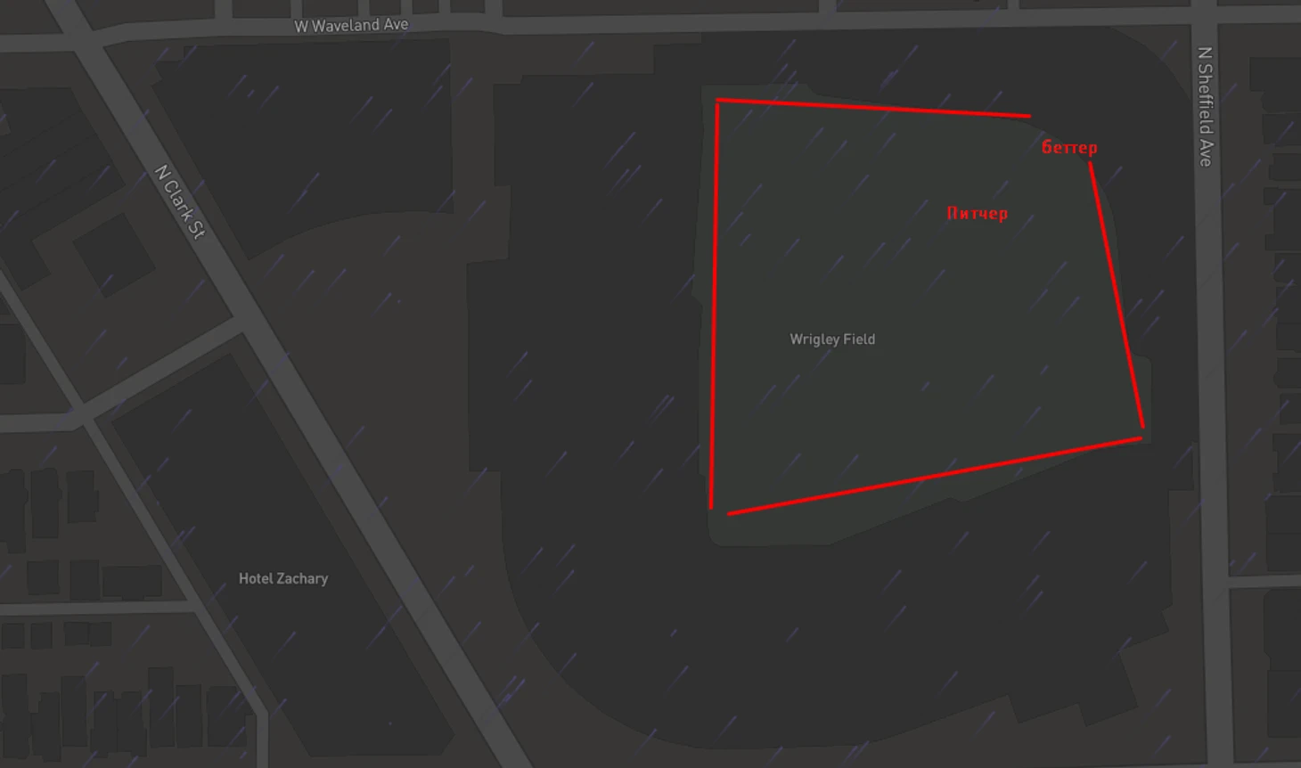Эти светлячки это направление ветра, красным я вам обвел поле и где стоит питчер и бьющие.