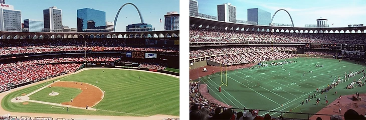 "Буш Мемориал Стэдиум" в дни игр бейсбольных и футбольных "Кардиналс".