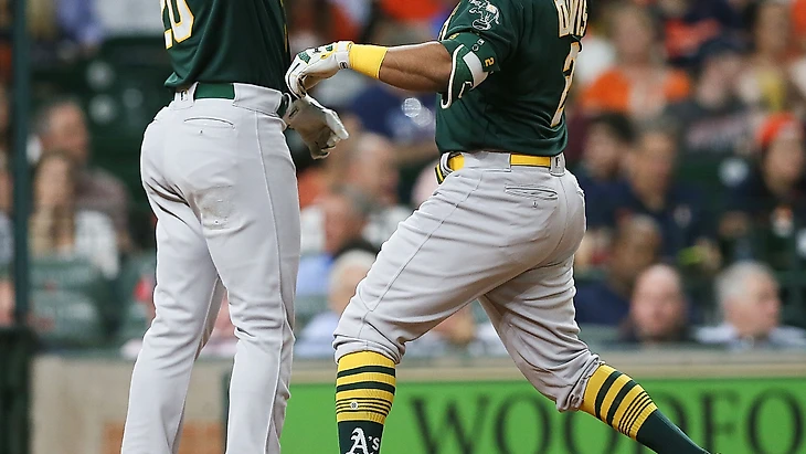 "Хьюстон Астрос"-"Окленд Атлетикс" 7:21.В первом иннинге Марк Канья выбил сингл и Маркус Семьен вывел гостей вперёд.Затем Чад Пиндер выбил сингл и Мэтт Олсон прибежал в дом.Далее Крис Дэвис выбил сингл и Марк Канья прибежал в дом.После этого Шон Мёрфи выбил сингл и Чад Пиндер увеличил отрыв гостей.Вскоре Робби Гроссман выбил сингл,а Крис Дэвис и Юриксон Профар принесли гостям ещё два очка.Затем Мэтт Чапман выбил сингл и Шон Мёрфи прибежал в дом.Хозяева ответили хоум-раном Джорджа Спрингера (32).Во втором иннинге Крис Дэвис своим хоум-раном (20) отправил Марка Канья в дом.В 3 иннинге Мэтт Олсон своим хоум-раном (30) отправил Мэтта Чапмана в дом.Хозяева ответили хоум-раном (33) Джорджа Спрингера.В 4 иннинге Шон Мёрфи своим хоум-раном (2) отправил Юриксона Профара в дом.Затем Маркус Семьен своим хоум-раном (27) отправил Робби Гроссмана в дом.Далее Мэтт Олсон своим хоум-раном (31) отправил Мэтта Чапмана в дом.В 5 иннинге Шон Мёрфи выбил хоум-ран (3).Затем Маркус Семьен выбил дабл (38) и Робби Гроссман прибежал в дом.Хозяева ответили хоум-раном (10) Мартина Мальдонадо.В 6 инниге после аута Юриксона Профара Марк Канья успел прибежать в дом.Хозяева ответили синглом Майлза Строу и забеганием Гарретта Стаббза.Затем Абрахам Торо выбил сингл и Майлз Строу прибежал в дом.В 9 иннинге Франклин Баррето выбил сингл и Юриксон Профар прибежал в дом.Хозяева ответили хоум-раном (11) Мартина Мальдонадо.Затем Джейк Марисник выбил сингл и Джош Реддик прибежал в дом.Питчер гостей Таннер Роарк (10-8) сделал 3 страйк-аута,заработал 6 гранд-аутов и один флай-аут.