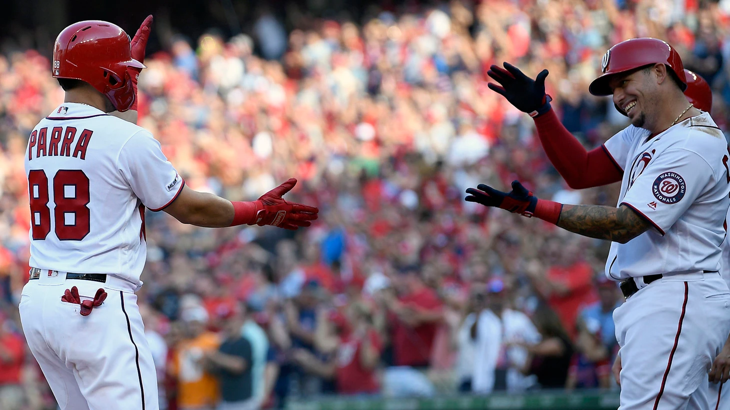 "Вашингтон Нэшнлз"-"Кливленд Индианс" 10:7.Хозяева во втором иннинге набрали сразу 9 очков и смогли дотянуть до победы.Во втором иннинге Патрик Корбин выбил сингл и Райан Циммерман вывел хозяев вперёд.Затем Адам Итон выбил сингл и Херардо Парра прибежал в дом.Далее Энтони Рендон выбил дабл (44),а Ян Гомес и Патрик Корбин увеличили отрыв хозяев.После этого Асдрубал Кабрера выбил сингл и Адам Итон прибежал в дом.Вскоре Херардо Парра выбил гранд-слэм (9),а Энтони Рендон с Хуаном Сото и Асдрубалом Кабрерой прибежали в дом.В 4 иннинге Джордан Луплоу выбил хоум-ран (14).Затем Эрик Хаасе своим хоум-раном (1) отправил Франмила Рейеса и Ю Чанга в дом.Хозяева ответили синглом Райана Циммермана и забеганием Хуана Сото.В 5 иннинге Франмил Рейес своим хоум-раном (37) отправил Джордана Луплоу в дом.В 9 иннинге Джордан Луплоу выбил хоум-ран (15).Реливер хозяев Дани эль Хадсон (9-3) сделал два страйк-аута,заработал один гранд-аут.