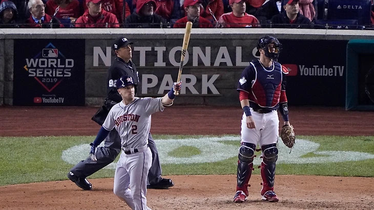 "Вашингтон Нэшнлз"-"Хьюстон Астрос" 1:8.В первом иннинге Алекс Брегман выбил сингл и Хосе Алтуве вывел гостей вперёд.Затем Юли Гурриэль выбил сингл и Майкл Брентли прибежал в дом.В 4 иннинге Робинсон Чиринос своим хоум-раном (2) отправил Карлоса Корреа в дом.В 6 иннинге после гранд-аута Хуана Сото Херардо Парра принёс единственное очко хозяевам.В 7 иннинге Алекс Брегман своим гранд-слэмом (2) отправил Кайла Такера с Джорджем Спрингером и Майклом Брентли в дом.Питчер гостей Хосе Уркиди (1-0) сделал 4 страйк-аута,заработал по 3 гранд-аута и флай-аута."Звёзды" сравняли счёт в серии 2-2.