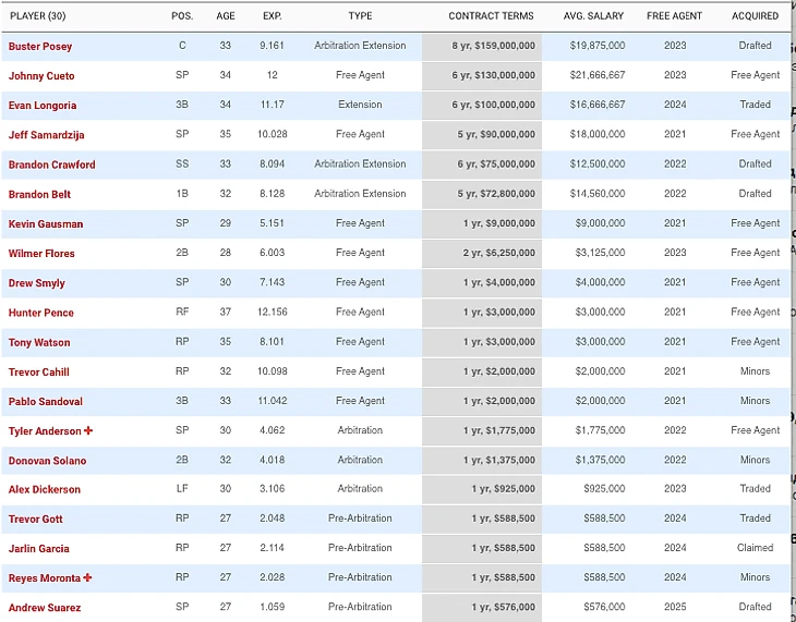 Команда еще тянет тяжелые контракты Posey, Cueto и Longoria. Только к 23 году команда сможет дышать и подписывать интересных игроков.