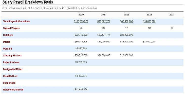 Гиганты. После урожайно декады десятых, безусловно будут продолжать перестройку. Но в отличие от команд ниже Гиганты имеют тяжелую платежку как минимум на 2 сезона. В 2020 это 150 млн и 21 минимум 95 контрактов. Это давольно много, с учетом того что Гиганты однозначно пока не будут вбухивать кэш в контракты, так как ещё не закончились закончится контракты Posey, Cueto и ко.