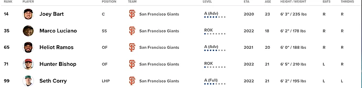 Лучшие из фермы #Гигантов. («С» - позиция, 10 - рейтинг в топ 100, 2021 - год дебюта в млб).