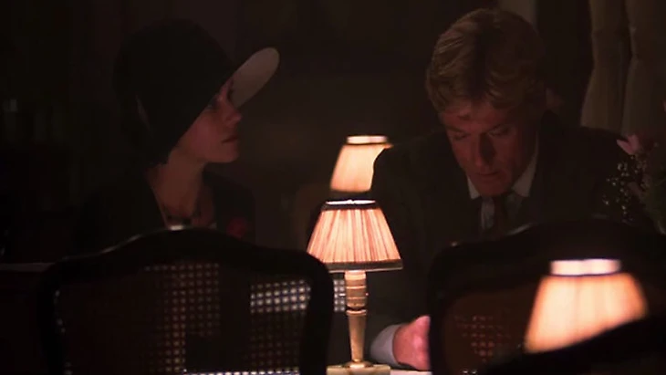 Знакомство Роя Хоббса с таинственной девушкой в поезде. Барбара Херши и Роберт Редфорд.